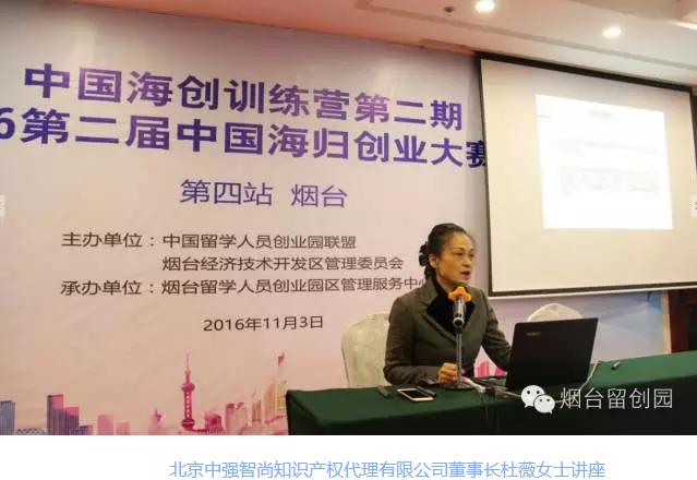 我公司董事(shì)長(cháng)杜薇女(nǚ)士作(zuò)為(wèi)知(zhī)識産權專家(jiā)應邀出席,為(w∞èi)本次大(dà)賽做(zuò)“企業品牌、市(shì)場(chǎng)營銷、知(zhī)識産權戰略”₽方面的(de)創業培訓。