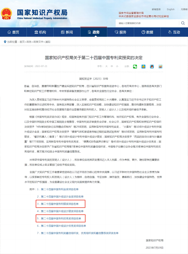 • 近(jìn)期, 為(wèi) 表彰 在 實施創新和(hé)推動經濟社會(huì)發展等方面作(zuò)出顯著貢¶獻的(de)專利權人(rén)、發明(míng)人(rén)(設計(jì)人(rén))以及相(xiàng)關組織者。 國(guó)家(jiā)知(zhī)識産權局公 布了(le) 第二十四÷屆中國(guó)專利獎授獎名單。 其中,北京衆達德權知識産權代理有限公司西安分公司服務的(de)客戶: δ天地(dì)科(kē)技(jì)股份有(yǒu)限公 司 的(de)專利一(yī)種适用(yòng)于綜采工(gōng)作(zuò)面的(de)液壓支架的(de)循環末阻力預÷測法(專利号:ZL... [2023-07-25]